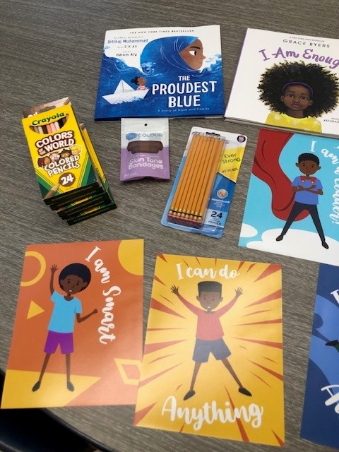 Here’s what she wrote to AEF: “Just wanted to send over a few pictures of how the grant has blessed the Scholars far. The fidgets are definitely a big hit! They are extremely helpful in assisting with the anxiety they often times face within the classroom. They were extremely excited to have the representation of themselves in the wall art/books, colored pencils, etc. The superhero stickers will be used to decorate their journals when we begin our groups next week! I have also used the funds for healthy snacks so they have the fuel to be focused and successful. 😊 Again, a million thanks to you for the grant!!!”