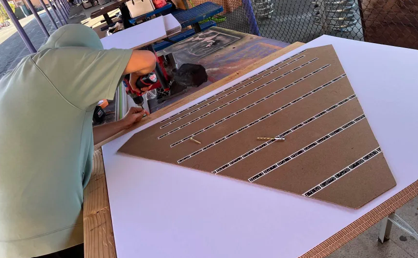 Since 2018 I have developed my own version of a high school maker class after being inspired by attending the 2018 Bay Area Maker Faire back when it was at the San Mateo Convention Center. The project I would like to do is to create a human sized planetarium from cardboard primarily cardboard. The idea is to mark out and cut large ~40 inch cardboard panels into 2 different types of triangles and some rectangles to create a geodesic dome that could fit ~20-24 middle schoolers inside. We would also use a projector with a reflector to turn the inside of the dome into an IMAX style theater where we could play educational videos.