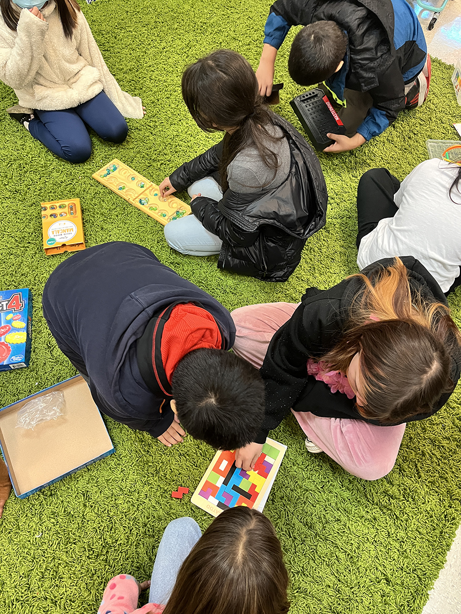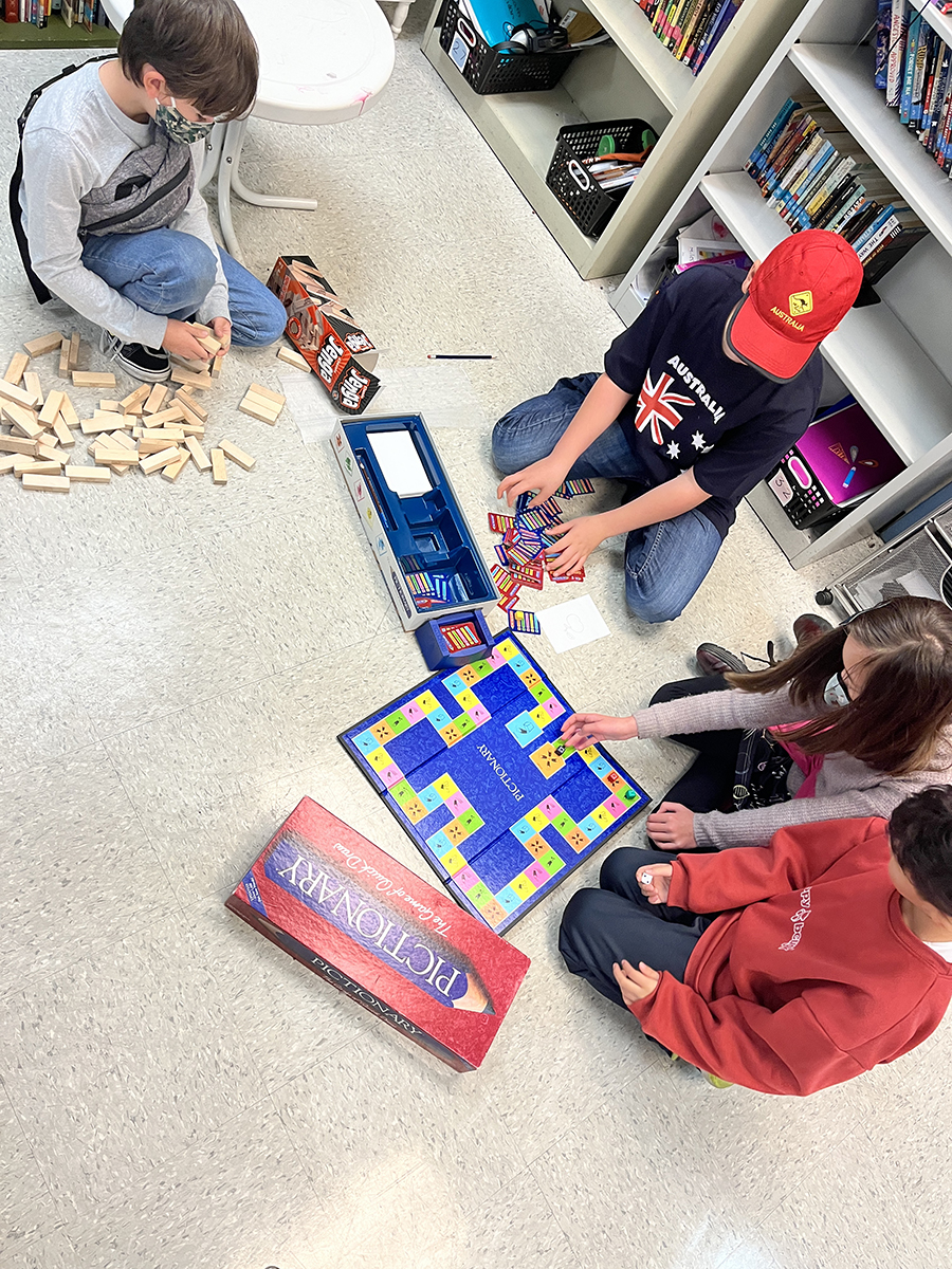 “Here are some pictures of my class enjoying rainy day recess thanks to an AEF Grant! They were happy to step away from computers and socialize face to face with some fun games and puzzles!”